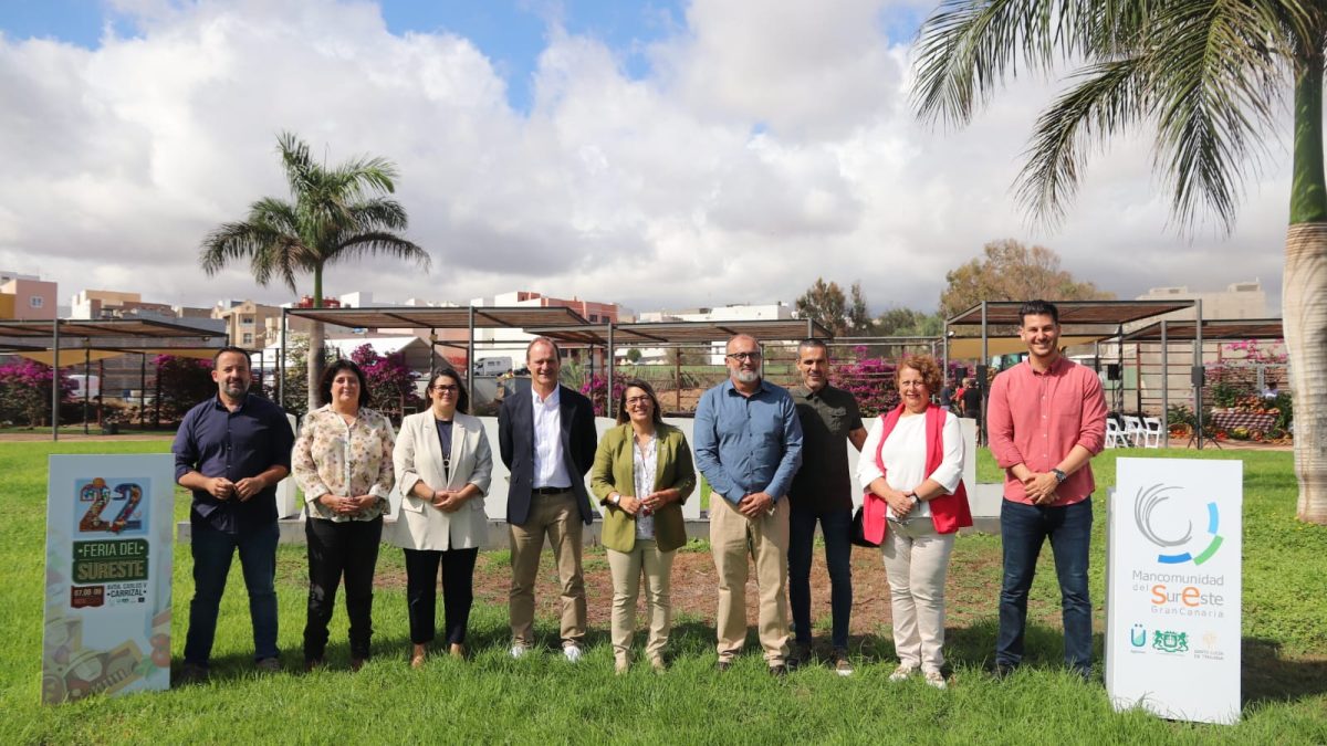 Una nueva edición de la Feria del Sureste de Gran Canaria se ha presentado este viernes, 31 de octubre, en el Parque de los Aromeros, en Ingenio. La Mancomunidad del Sureste organiza desde hace ya 22 ediciones este encuentro multidisciplinar que pone en valor la riqueza agroalimentaria y artesanal de la Comarca. Esta feria se alza ya como una seña de identidad de la zona, teniendo siempre una gran acogida. Se celebrará los días 7, 8 y 9 de noviembre en la Avenida Carlos V, en Carrizal. En el acto han estado presentes la presidenta de la Mancomunidad y alcaldesa de Ingenio, Vanesa Martín; el alcalde Agüimes, Óscar Hernández, y el alcalde de Santa Lucía de Tirajana, Francisco García.